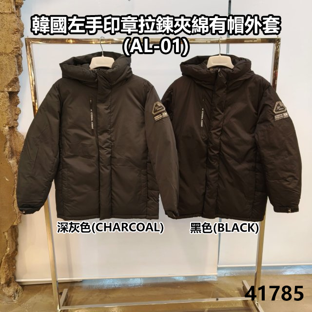 41785.🔴凡購買任何羽絨倉服裝3件,送隨機顏色羽絨頸巾🔴15/1韓國🇰🇷連線 韓國左手印章拉鍊夾綿有帽外套(AL-01)⚠️18/1截單⚠️預計2月尾到貨