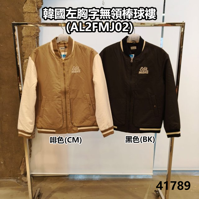 41789.🔴凡購買任何羽絨倉服裝3件,送隨機顏色羽絨頸巾🔴15/1韓國🇰🇷連線 韓國左胸字無領棒球褸(AL2FMJ02)⚠️18/1截單⚠️預計2月尾到貨