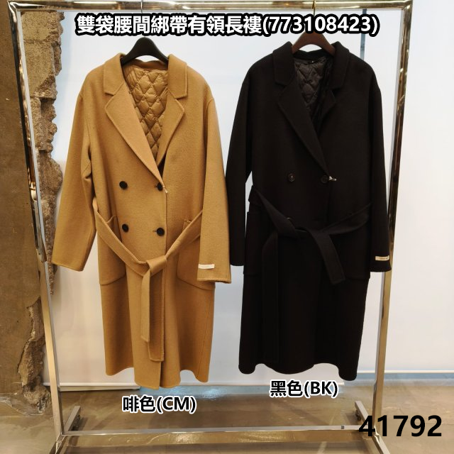 41792.🔴凡購買任何羽絨倉服裝3件,送隨機顏色羽絨頸巾🔴15/1韓國🇰🇷連線 雙袋腰間綁帶有領長褸(773108423)⚠️18/1截單⚠️預計2月尾到貨