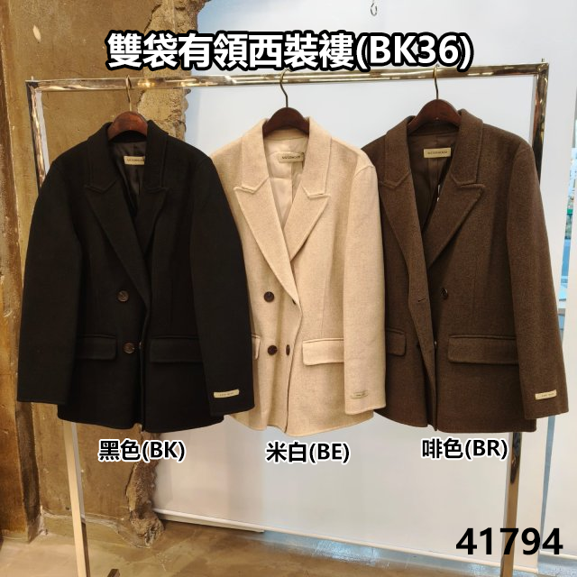41794.🔴凡購買任何羽絨倉服裝3件,送隨機顏色羽絨頸巾🔴15/1韓國🇰🇷連線 雙袋有領西裝褸(BK36)⚠️18/1截單⚠️預計2月尾到貨