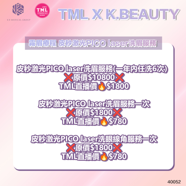 TML X K.BEAUTY 2025年10月霧眉團 皮秒激光PICO laser洗眉服務【20/10截單 | 23/10供應商會開始WhatsApp聯絡預約時間 | 20251017(40052.)】