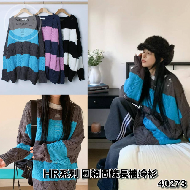 40273.21/11月韓國連線 HR系列 圓領間條長袖冷衫⚠️26/11截單⚠️預計1月初到貨