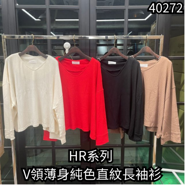 40272.21/11月韓國連線 HR系列 V領薄身純色直紋長袖衫⚠️26/11截單⚠️預計1月初到貨