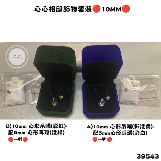 39543.🐥執雞🐥奧地利水晶心心吊墜頸繩 ❤️10MM❤️ 配心形耳環一對 套裝set⚠️數量有限⚠️先入先得⚠️售完即止