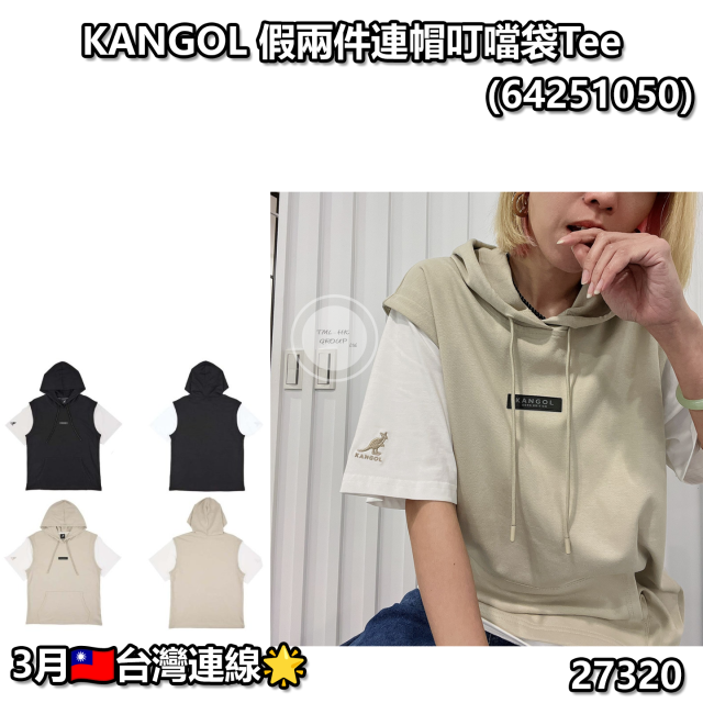 KANGOL 假兩件連帽叮噹袋Tee(64251050)【16/10截單 |預計10月尾出貨 | 20251011A(27320.)】