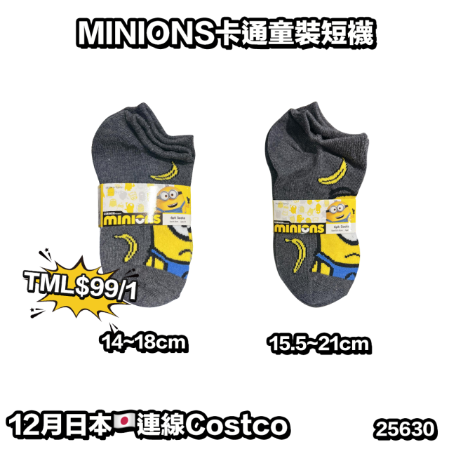 25630.🐥執雞🐥Costco MINIONS卡通童裝短襪⚠️數量有限⚠️先入先得⚠️售完即止⚠️