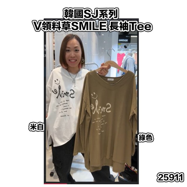 韓國SJ系列 V領料草SMILE 長袖Tee 【9/10截單 | 預計10月中至尾出貨 | 20251004(25911.)】