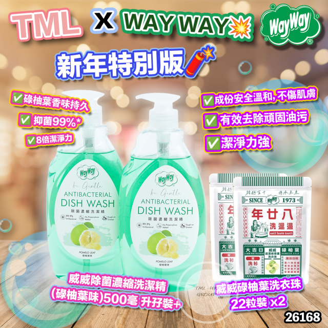 26168.TML x WAY WAY💥新年特別版🧨威威除菌濃縮洗潔精(碌柚葉味)500毫 升孖裝+威威碌柚葉洗衣珠22粒裝 x2