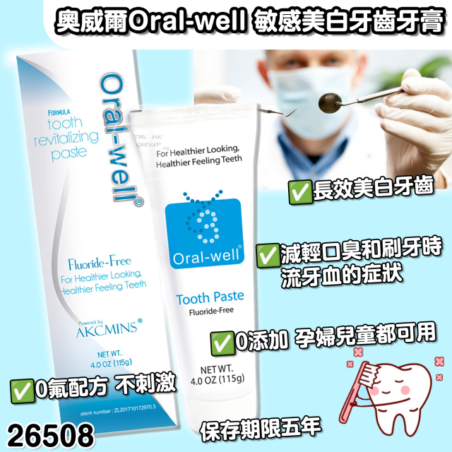 奧威爾Oral-well 敏感美白牙齒牙膏(115g)【買三送二 | 買滿6件包郵 | 10/10截單 | 預計11月頭到貨 | 20251005(26508.)】