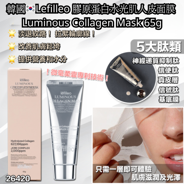 26420.13/6月韓國連線 韓國🇰🇷Lefilleo 膠原蛋白水光肌人皮面膜 Luminous Collagen Mask 65g⚠️28/6截單⚠️預計七月尾至八月初到貨