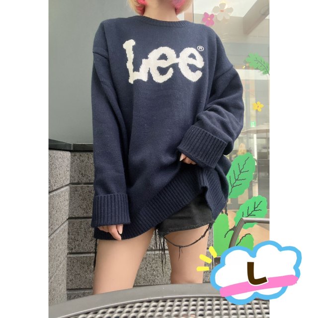 20240. 🔴藍色🔴L碼🔴lee 中間大logo 長袖針織(LE2203KT01)
