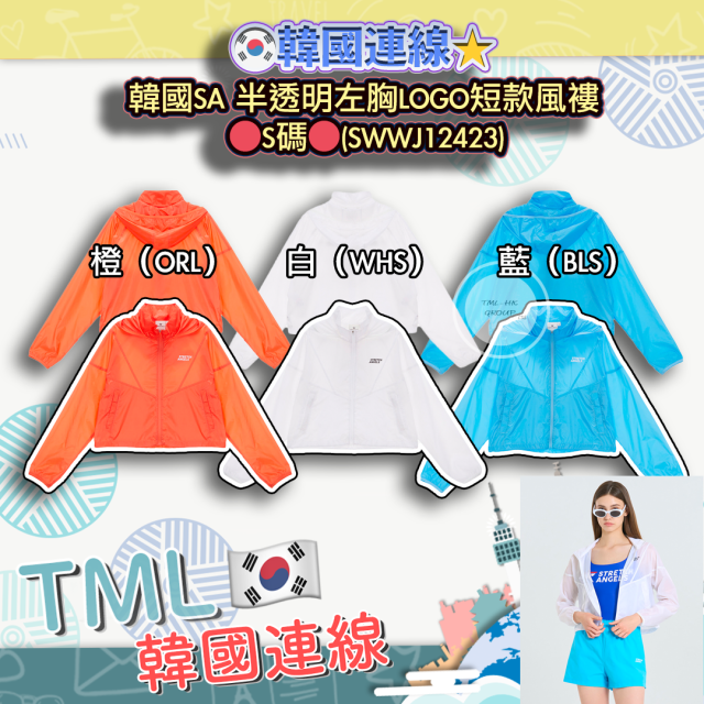 14999. Stretch Angels 半透明左胸LOGO短款風褸 🔴S碼🔴(SWWJ12423)