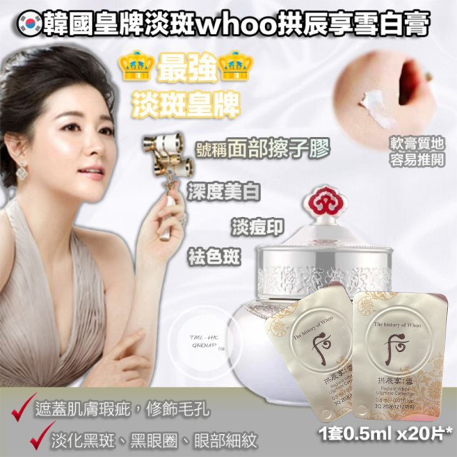 韓國Whoo 后 拱辰享 雪白膏(1套20片)【買滿$1000包郵(樂記包郵) | 31/8截單 | 預計9月尾至10月初到貨 | 20250826(10576.)】