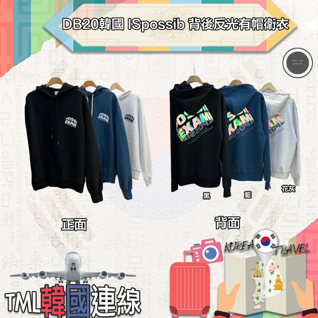 主頁 韓國 ISpossib 背後反光有帽衛衣(DB20)【現貨| 預計2-3星期派貨 | 20251222Z(11374.)】