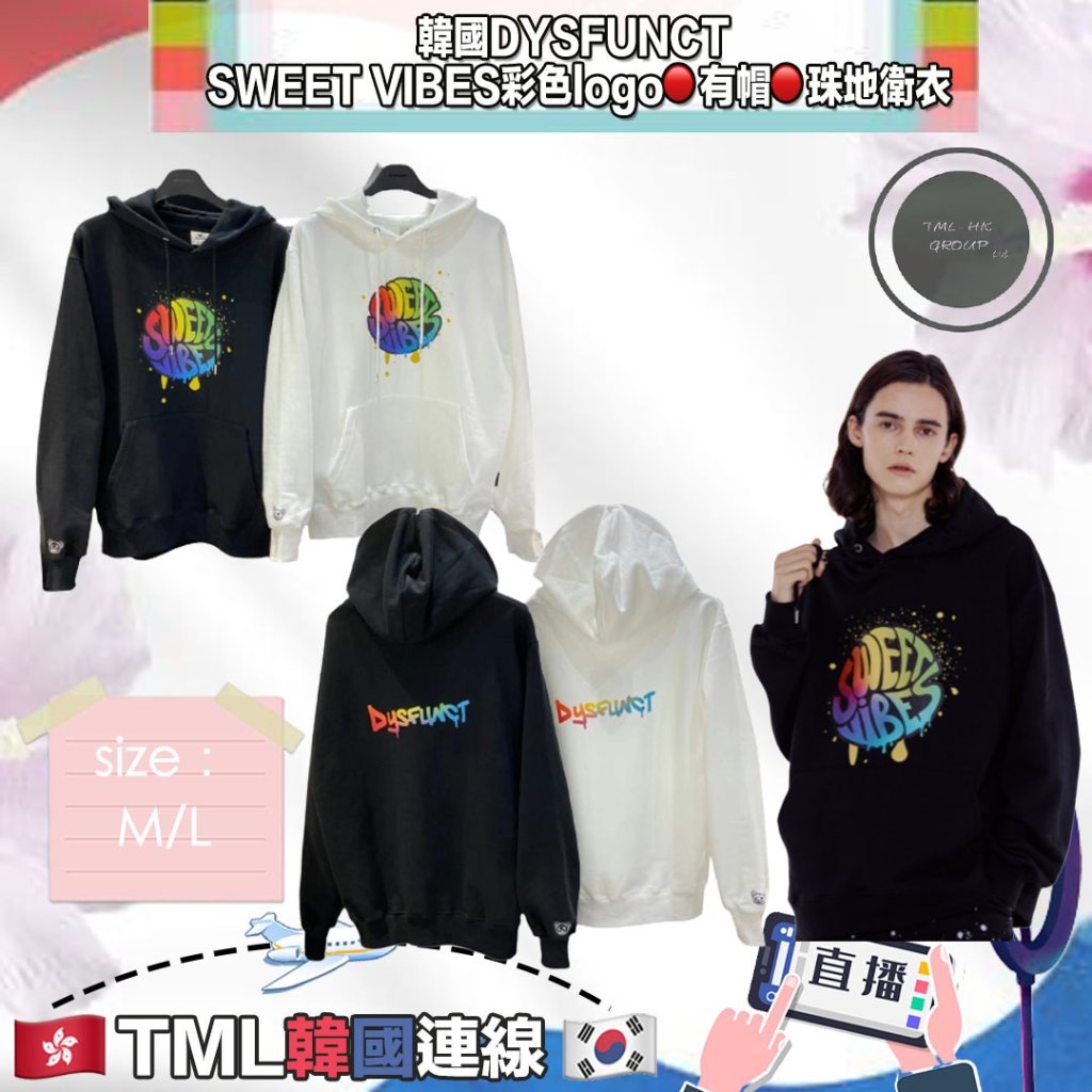 主頁 韓國DYSFUNCT SWEET VIBES彩色logo🔴有帽🔴珠地衛衣【現貨 | 預計2-3星期派貨 | 20251212Z(11786.)】