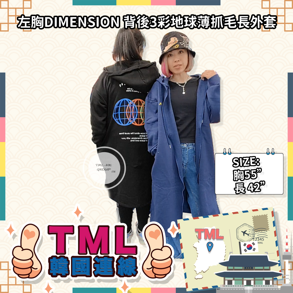 左胸DIMENSION 背後3彩地球薄抓毛長外套 【現貨 | 預計2-3星期派貨 | 20260105Z(12937.)】