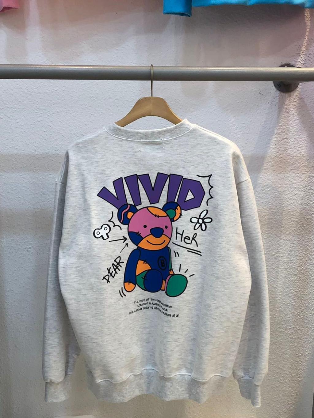 韓國 背後 VIVID 拼接熊仔圓領衛衣 【現貨| 預計2-3星期派貨 | 20251222Z(13458.)】