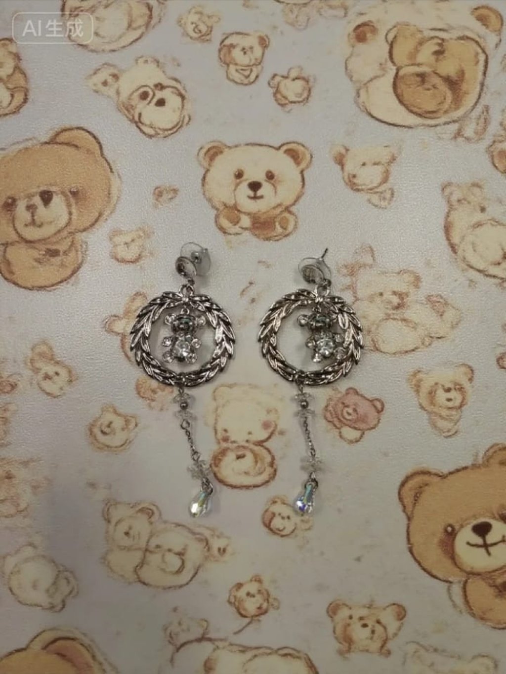 13826.🐥執雞🐥 TML X DearestKT 小熊水晶耳環 (銀色) (CE02-01)⚠️數量有限⚠️先入先得⚠️售完即止⚠️