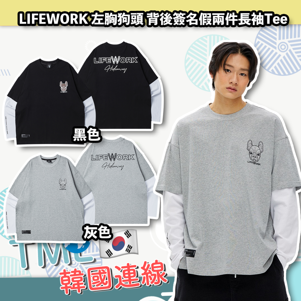 LIFEWORK 左胸狗頭 背後簽名假兩件長袖Tee (LW231TL360)【現貨 | 預計2-3星期派貨 | 20260105Z(15136.)】
