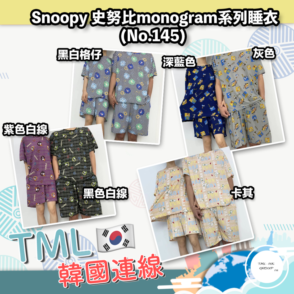 Snoopy 史努比monogram系列睡衣(No.145)【9/10截單 | 預計10月中至尾出貨 | 20251004(15189.)】