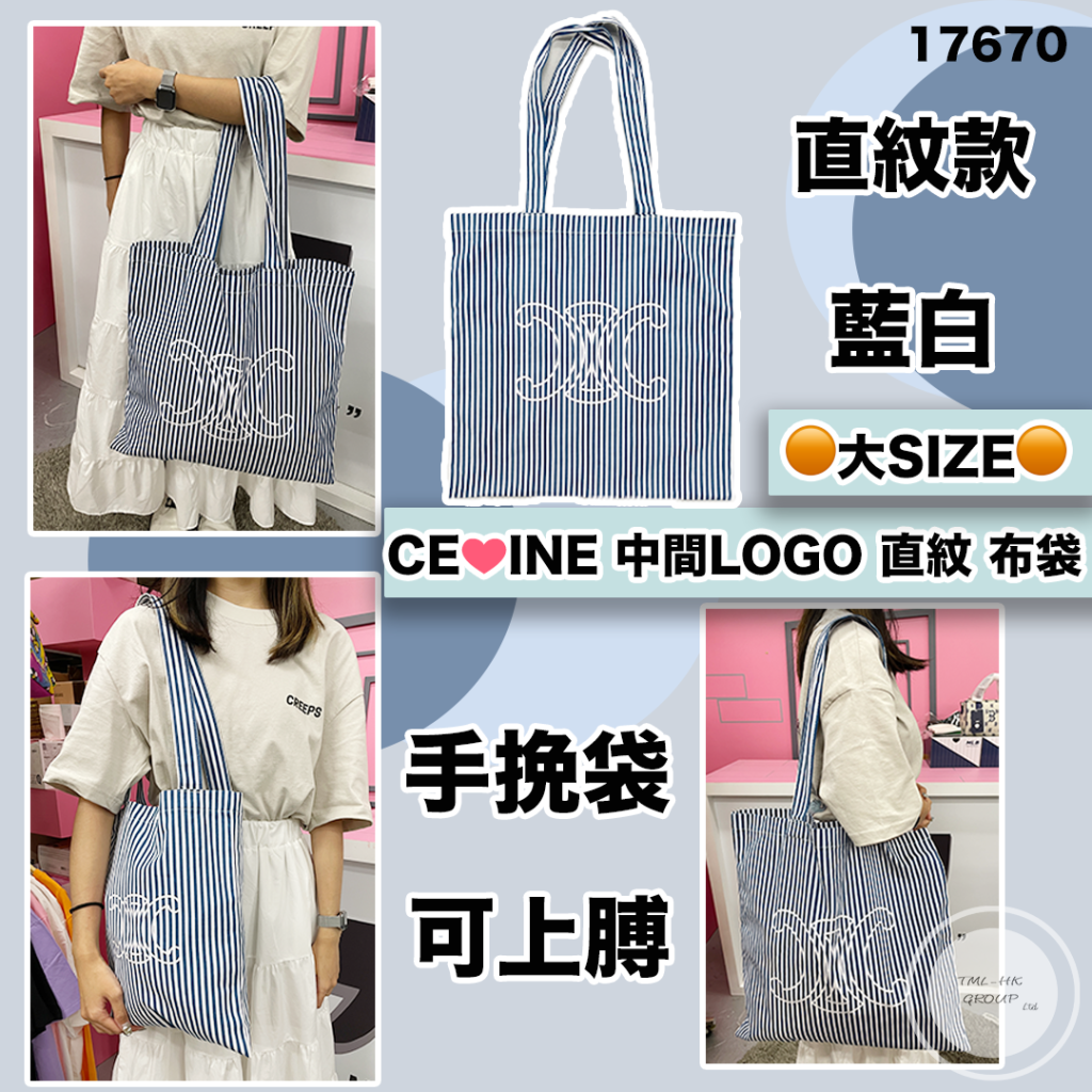 主頁 17670.🐥執雞🐥🔴大SIZE🔴限量 CE❤️INE 中間LOGO 直紋 布袋 ⚠️數量有限⚠️先入先得⚠️售完即止⚠️