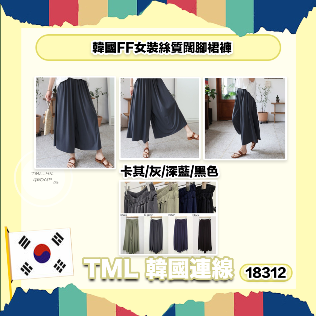 主頁 韓國🇰🇷FF女裝絲質闊腳裙褲【現貨 | 預計2-3星期派貨 | 20260423Z(18312.)】