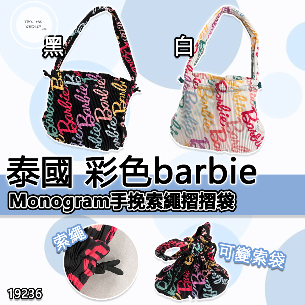 19236. 🐥執雞🐥泰國 彩色barbie monogram手挽索繩摺摺袋⚠️數量有限⚠️先入先得⚠️售完即止⚠️