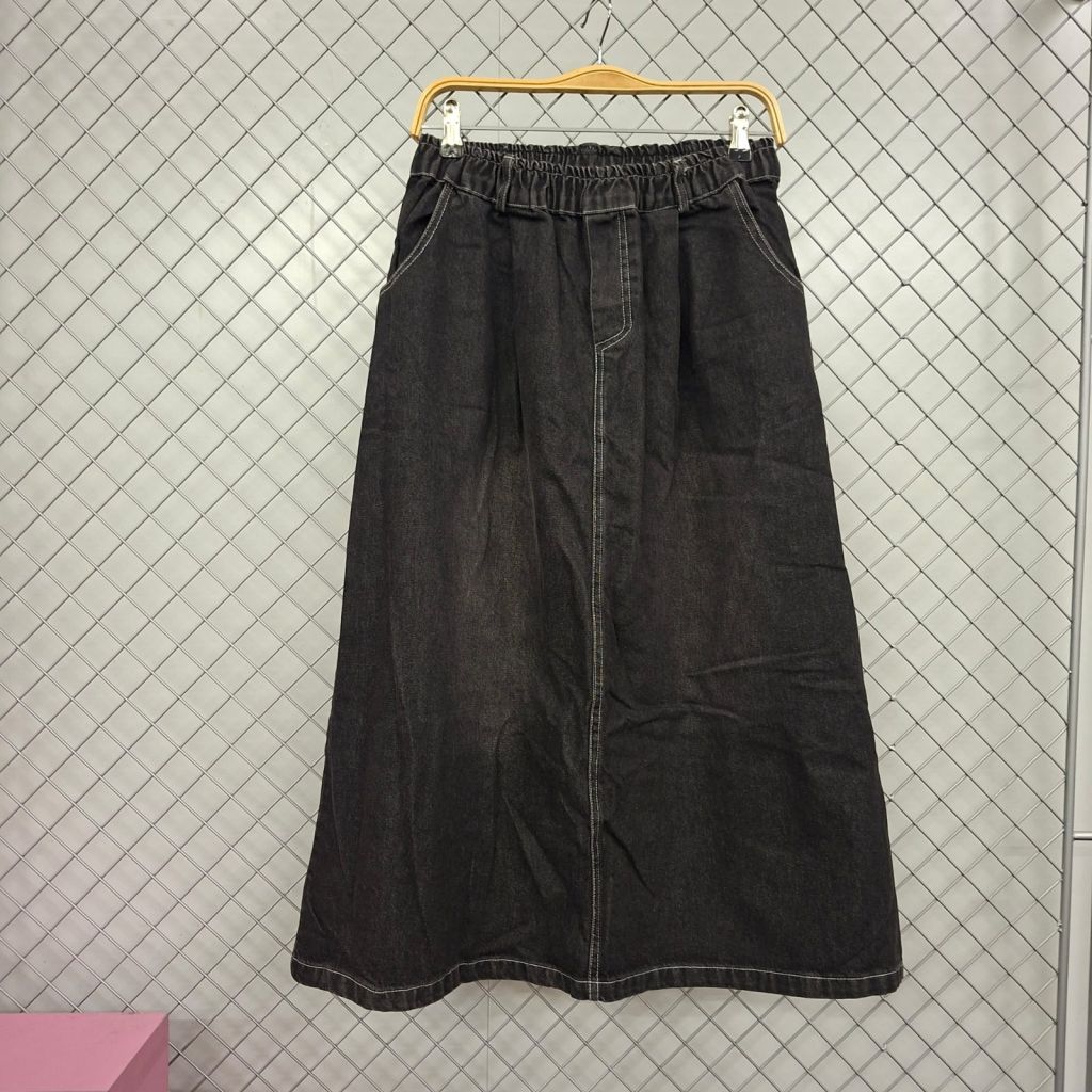 橡根腰後開叉牛仔長裙 黑【買滿$1000包郵 | 現貨 | 預計2-3星期派貨 | 20260222(2079.)】