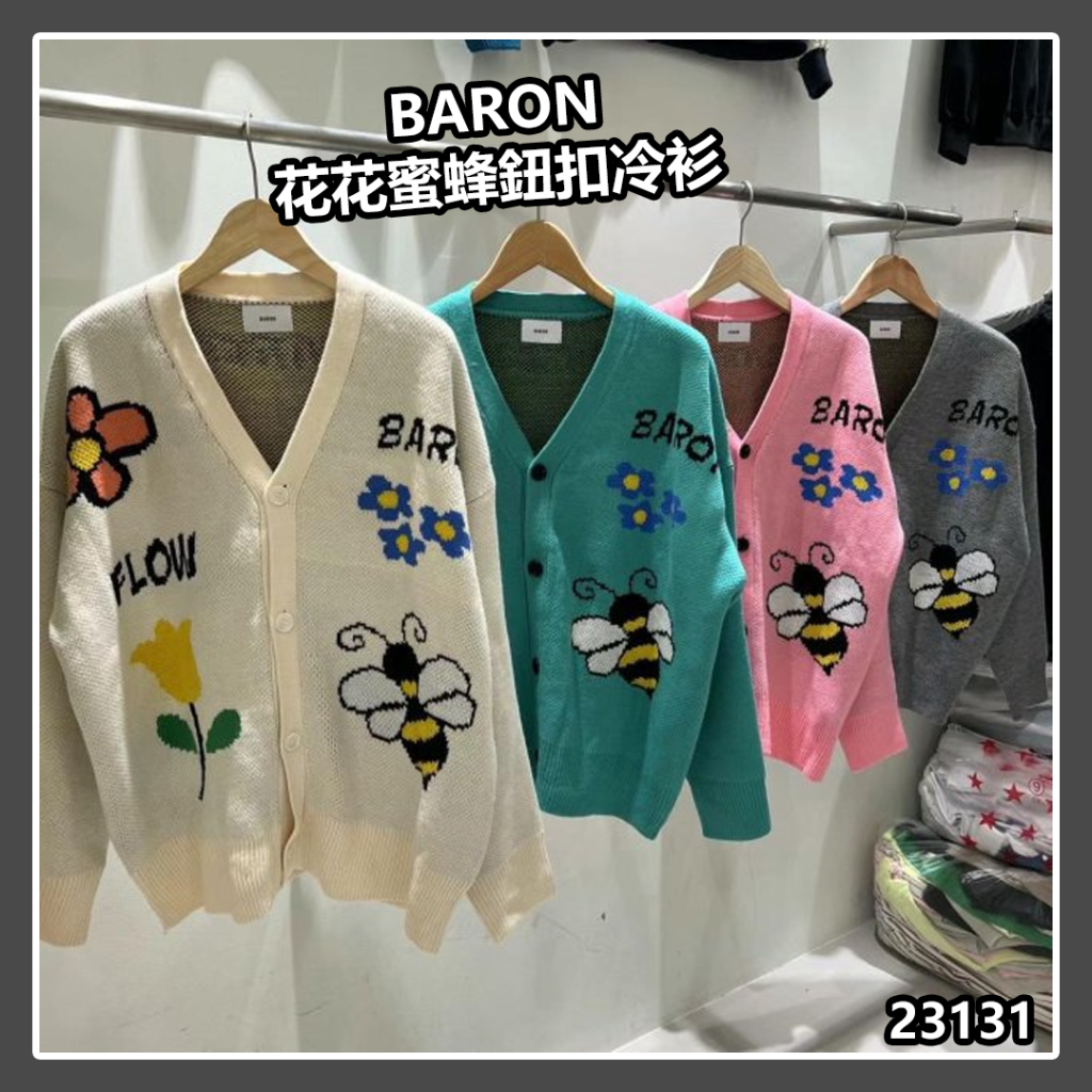 BARON 花花蜜蜂鈕扣冷衫【現貨| 預計2-3星期派貨 | 20260110Z(23131.)】