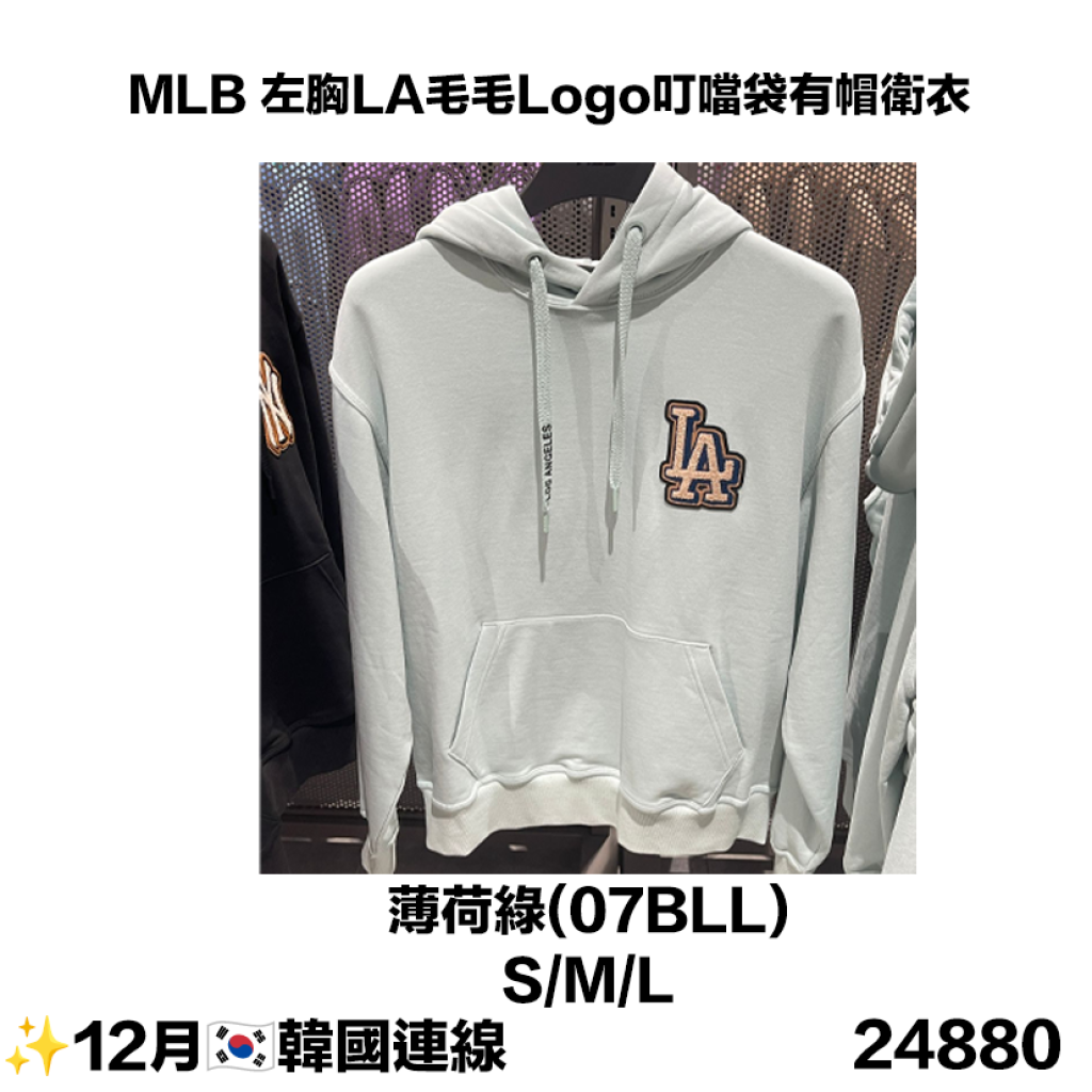 MLB 左胸LA毛毛Logo叮噹袋有帽衛衣(3AHDB0426)(🟢薄荷綠(07BLL)🟢)【 現貨 | 預計2-3星期派貨 | 20260113Z(24880.)】