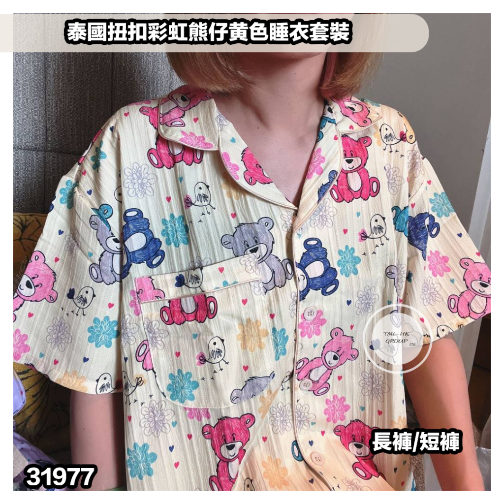 31977.🐥執雞🐥泰國扭扣彩虹熊仔黄色睡衣套裝⚠️數量有限⚠️先入先得⚠️售完即止⚠️
