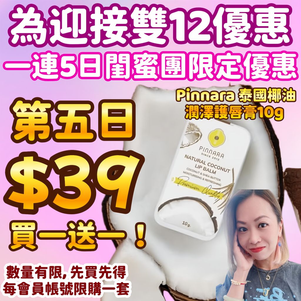 主頁 閨蜜團會員限時雙12優惠 泰國 PINNARA天然椰子油潤唇膏(買一送一)【現貨 | 預計2-3星期派貨 | 20251211(31997.)】