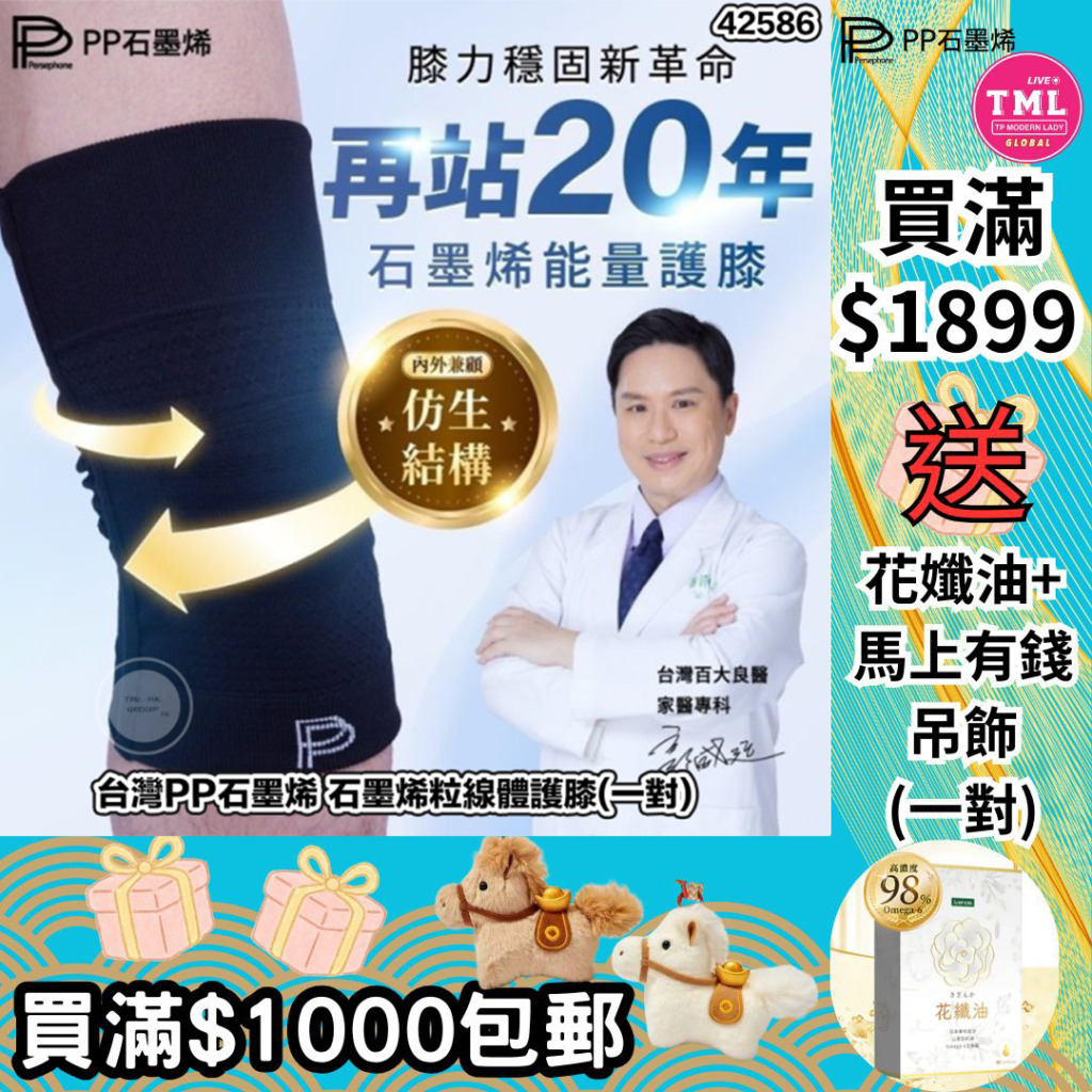 台灣PP石墨烯 石墨烯粒線體護膝(一對)【PP產品買滿$1000包郵 | 3/1截單 | 預計2月中至尾到貨 | 20251229P(42586.)】
