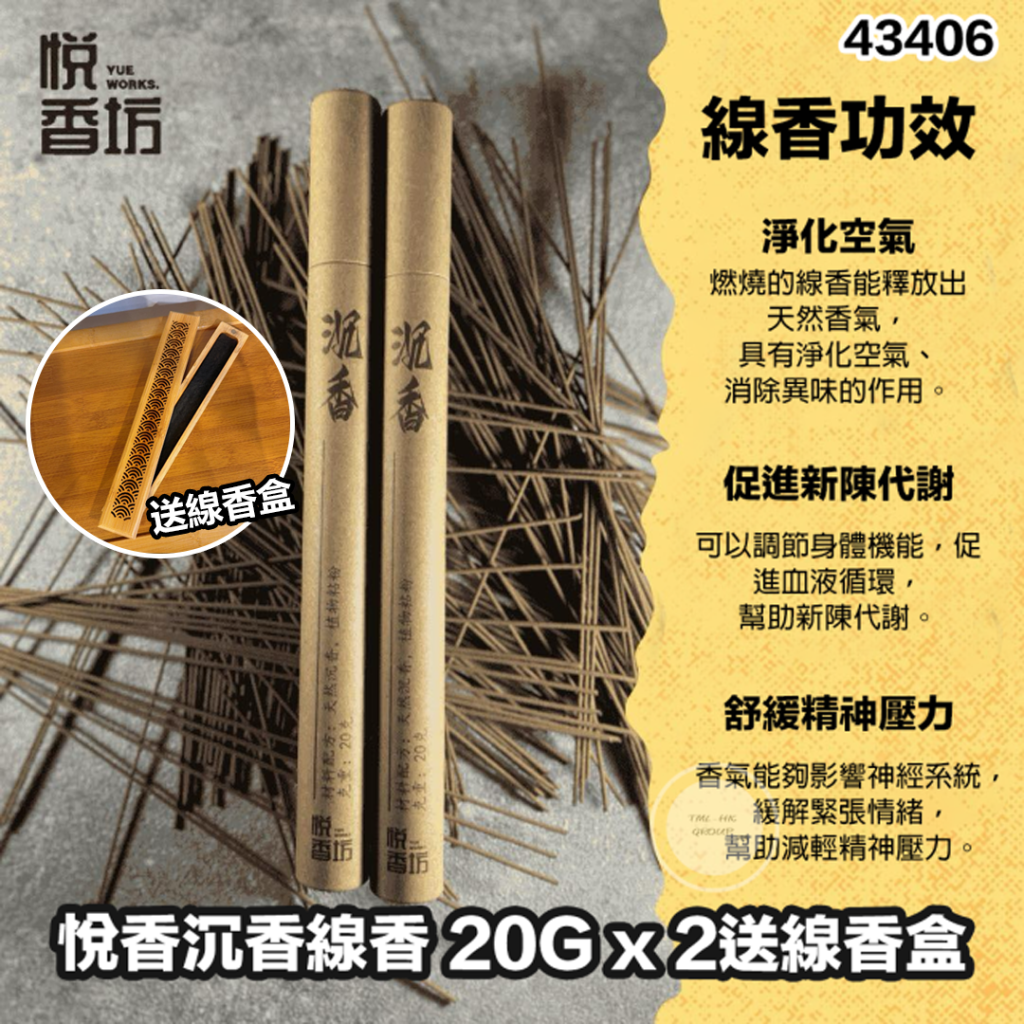 馬來西亞 悅香沉香線香 20G x 2【買滿$1000自選包郵 | 送線香盒 | 14/10截單 | 預計11月尾到貨 | 20251009(43406.)】