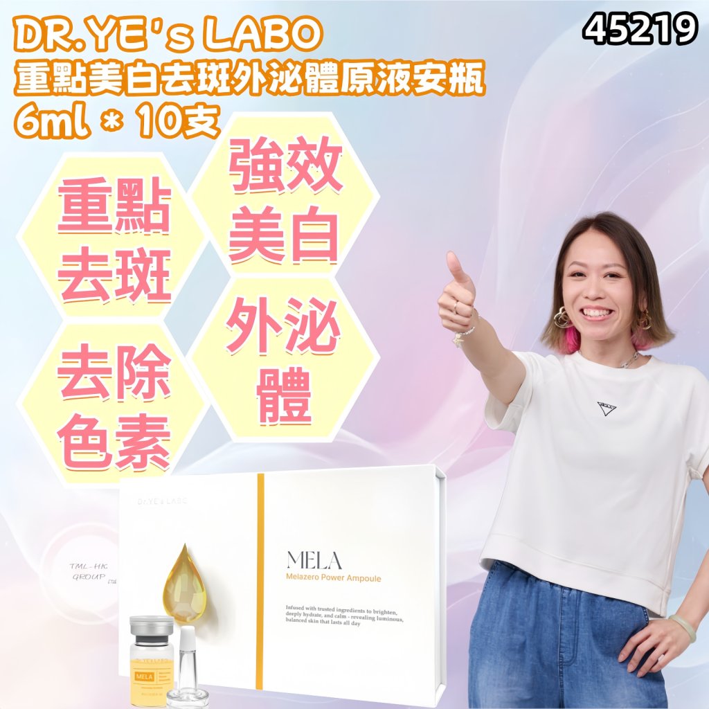 急救護理:潔面後,厚搽DR.YE's LABO 重點美白去斑外泌體原液安瓶,配合按摩或美容儀至吸收,再敷一張面膜,敷完再搽薄薄搽一層安瓶,再搽面霜。