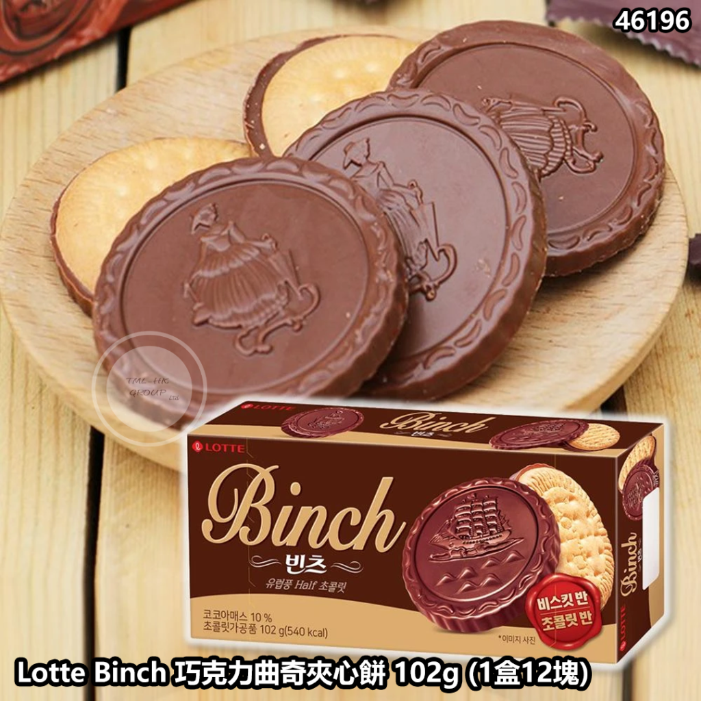 主頁 🐥執雞🐥韓國零食場 Lotte Binch 巧克力曲奇夾心餅 102g (1盒12塊)【1(46196.)】⚠️數量有限⚠️先入先得⚠️售完即止⚠️