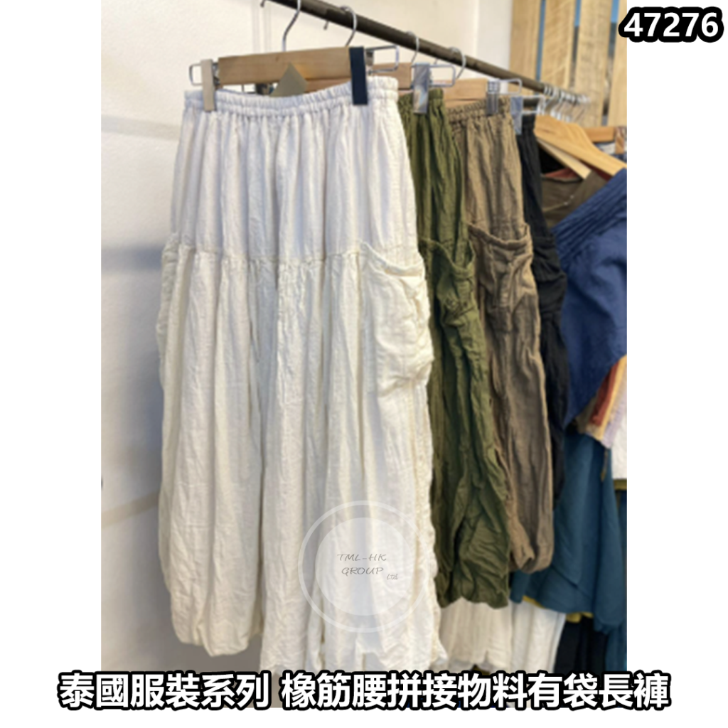 47276.泰國連線🇹🇭 泰國服裝系列 橡筋腰拼接物料有袋長褲 現貨在倉