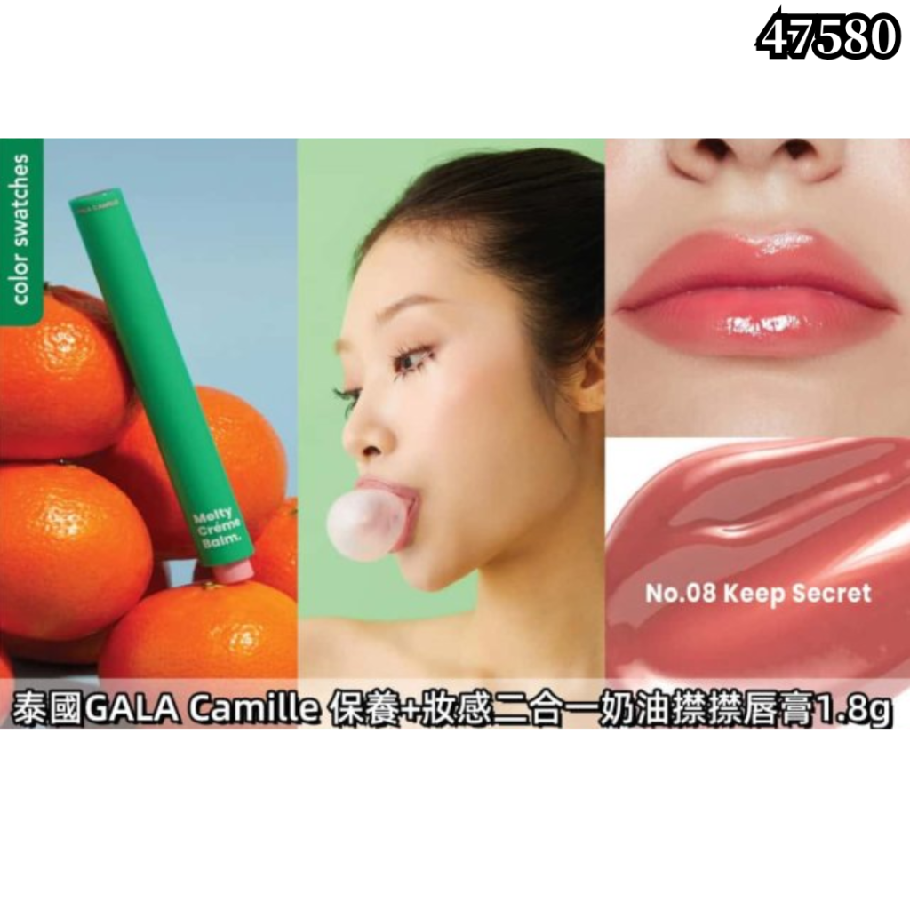 Gala Camille Melty Creme Balm 是泰國超人氣的「唇部保養+妝感」二合一產品,主打 高保濕、亮澤光感、自然顯色,非常適合日常使用。