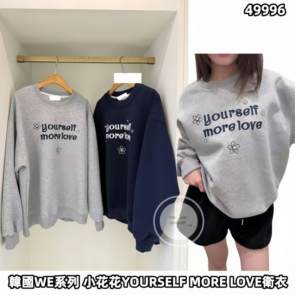 主頁 韓國WE系列 小花花YOURSELF MORE LOVE衛衣【買五件包郵及送東大門電話繩一條 | 31/10截單 | 預計12月初至中到貨 | 20251026B(49996.)】