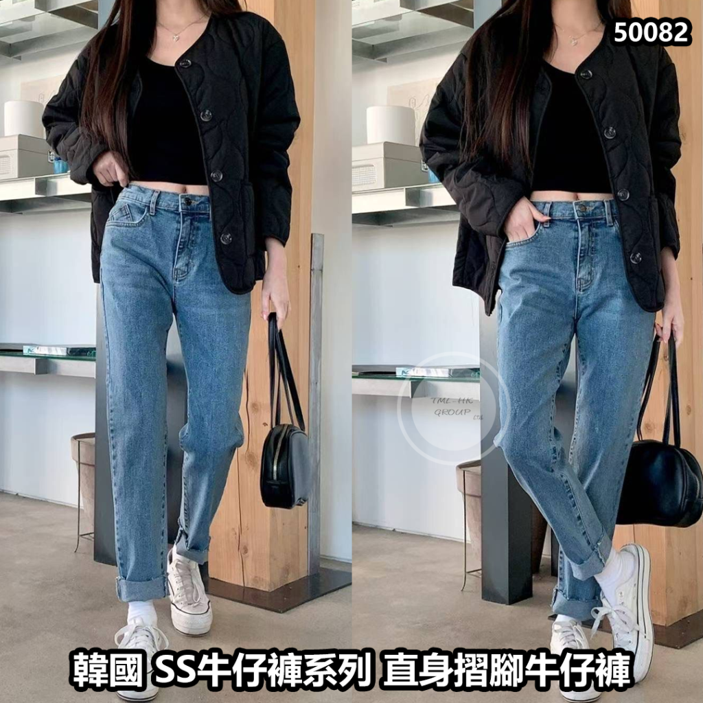 韓國 SS牛仔褲系列 直身摺腳牛仔褲(1353)【6/11截單 | 預計12月中到貨 | 20251102C(50082.)】