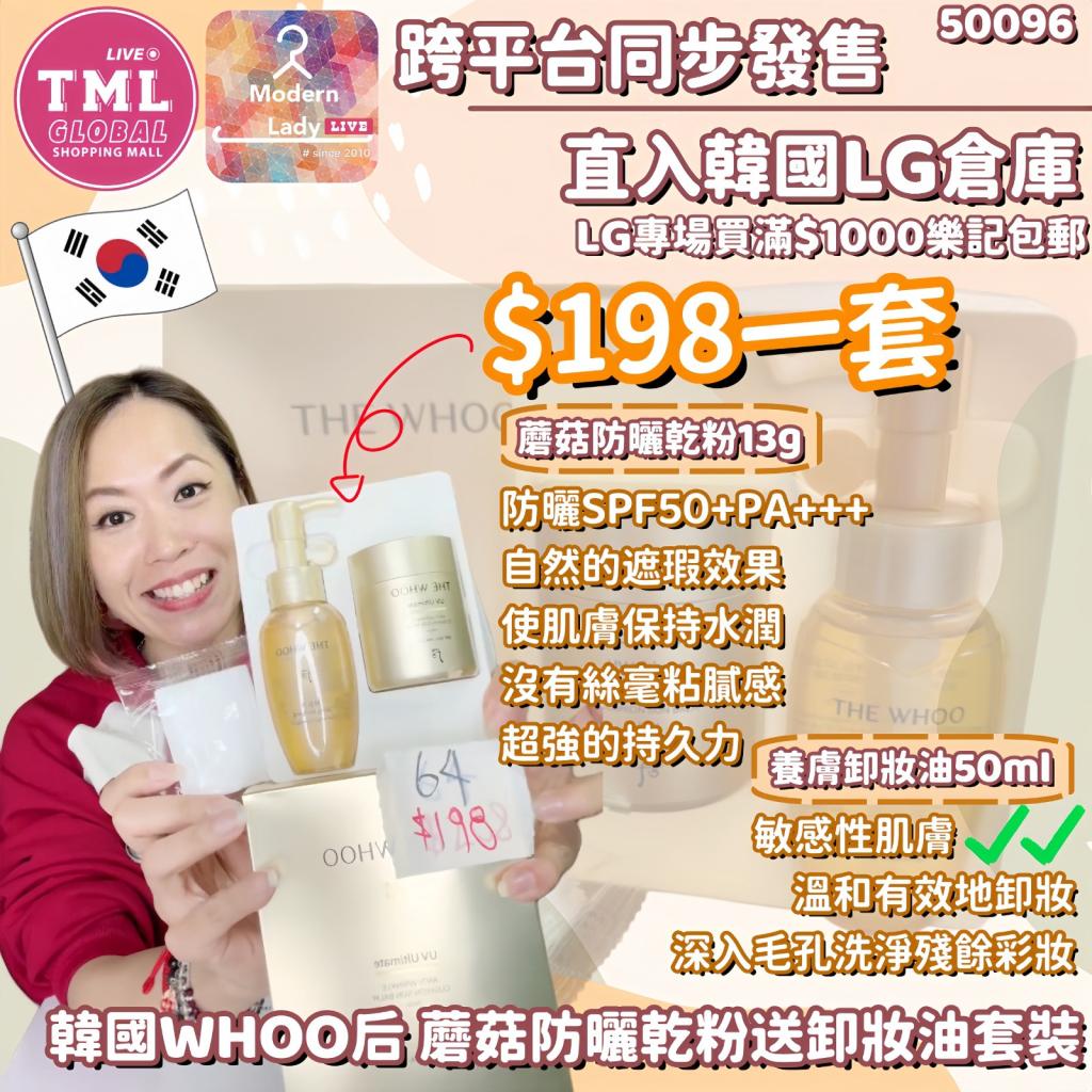 主頁 韓國 Whoo 后 蘑菇防曬乾粉送卸妝油套裝【買滿$1000包郵 | 24/3截單 | 預計4月尾到貨 | 20260319B(50096.)】