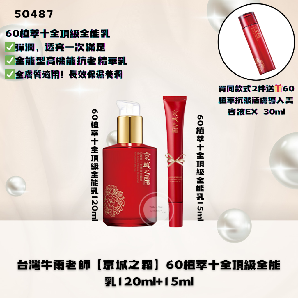 台灣牛爾老師【京城之霜】60植萃十全頂級全能乳120ml+15ml【$1000包郵 | 27/10截單 | 預計12月初至中到貨 | 20251022(50487.)】