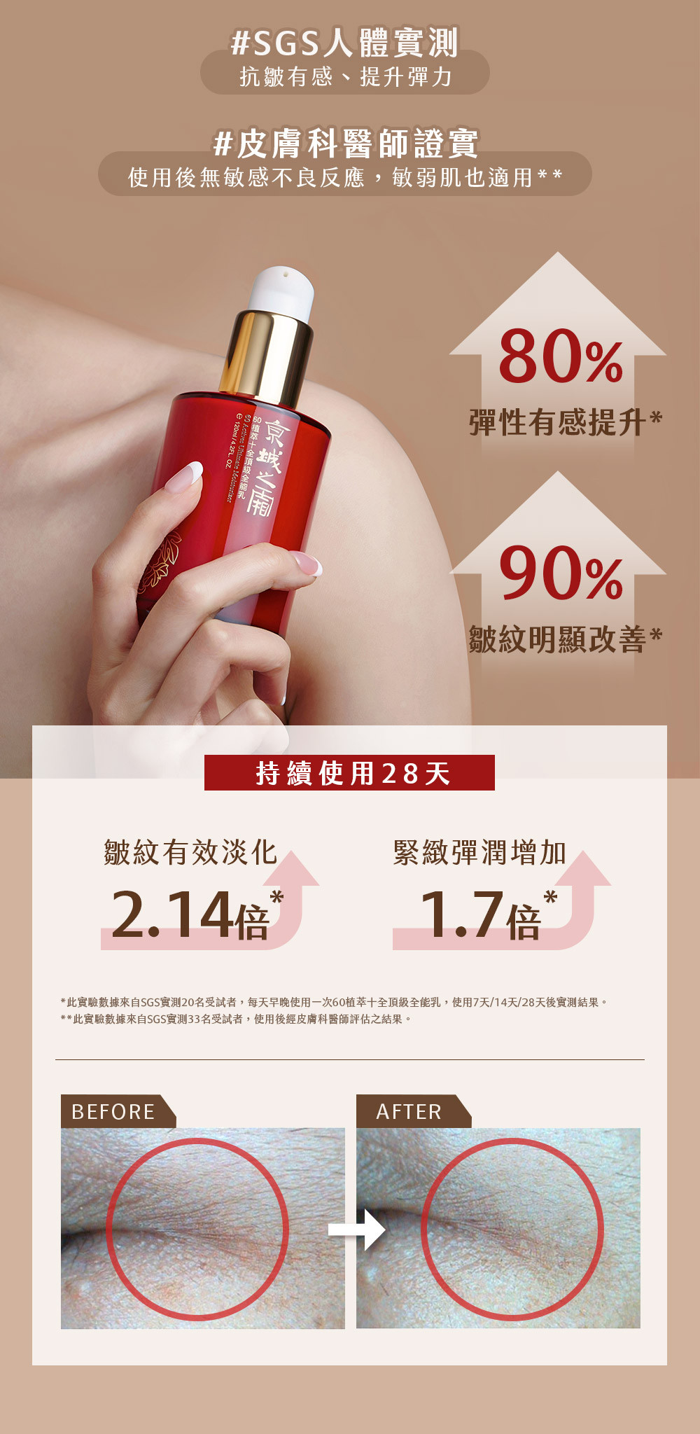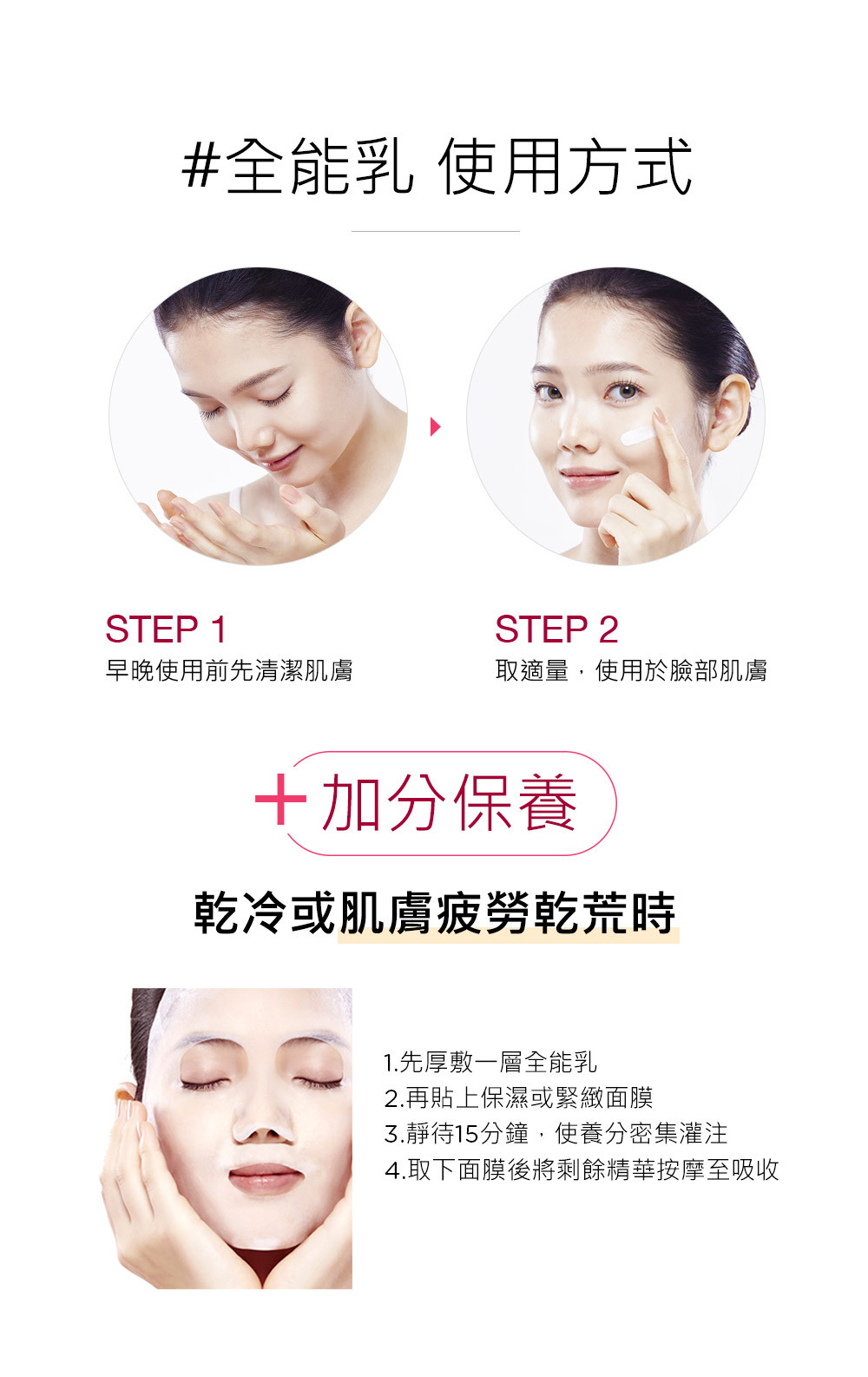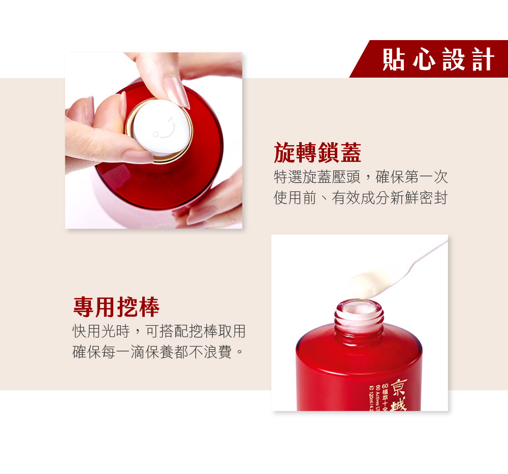 京城之霜暢銷經典的全能乳,是一款輕潤不黏膩的「精華級」抗老凝乳,5%積雪草萃取與歐盟有機認證的雪絨花精華,搭配十大煥顏胜肽、60植萃成分,提供全效型減齡保養,一瓶滿足緊、彈、嫩、透的肌膚需求。