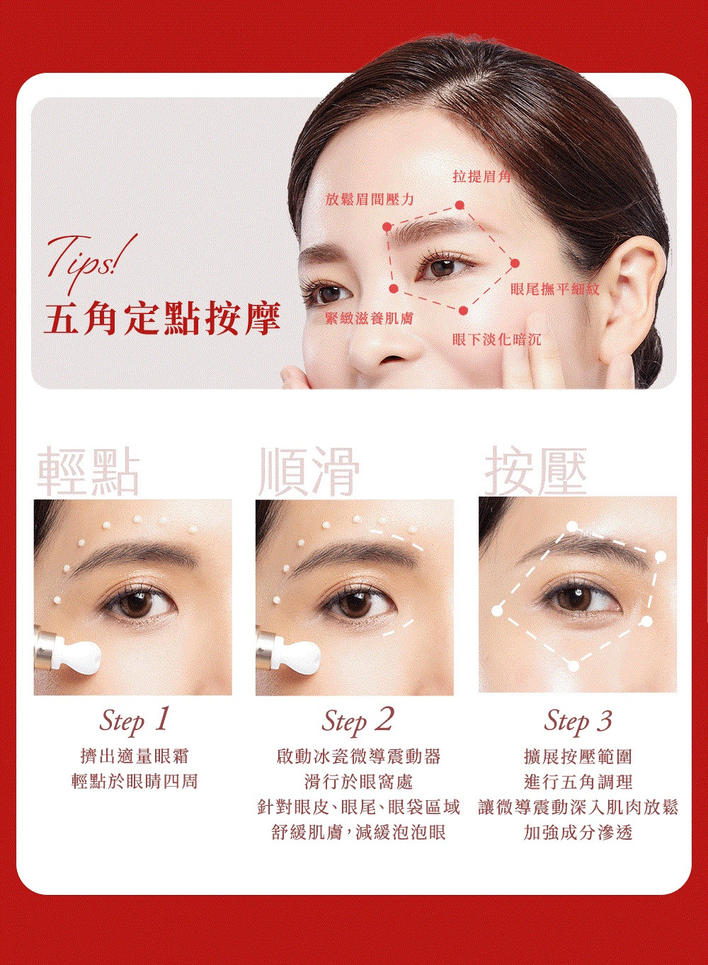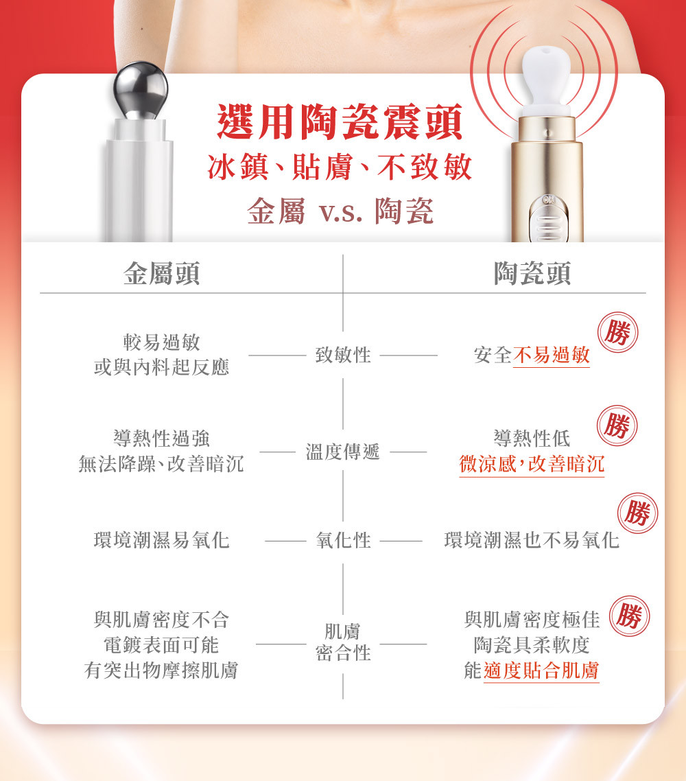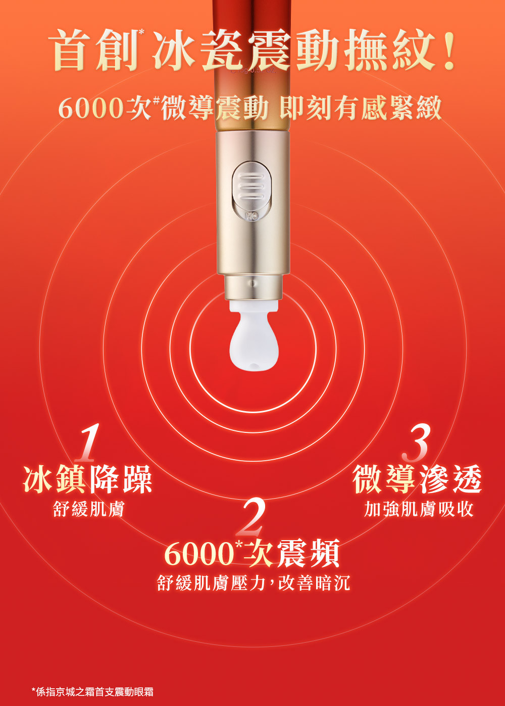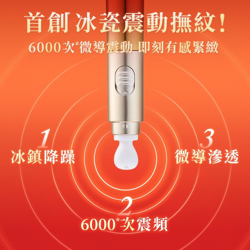 每分鐘6000次冰瓷微導震動,輕柔撫去眼周細紋
