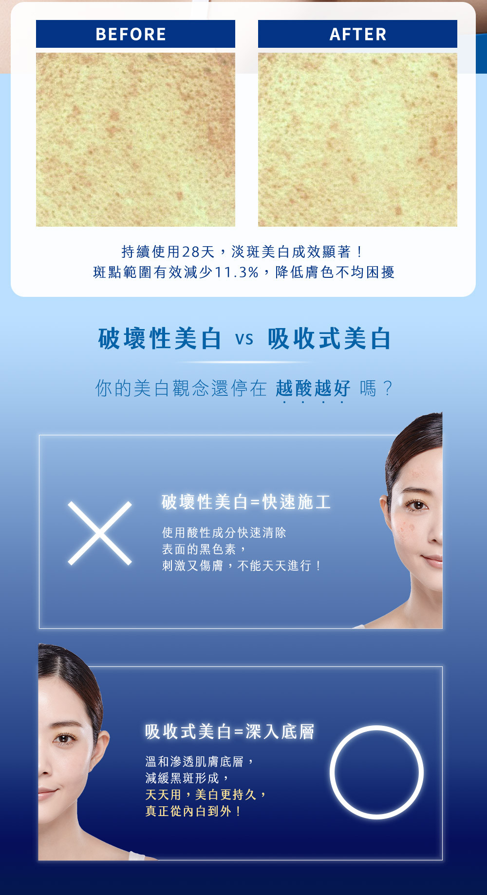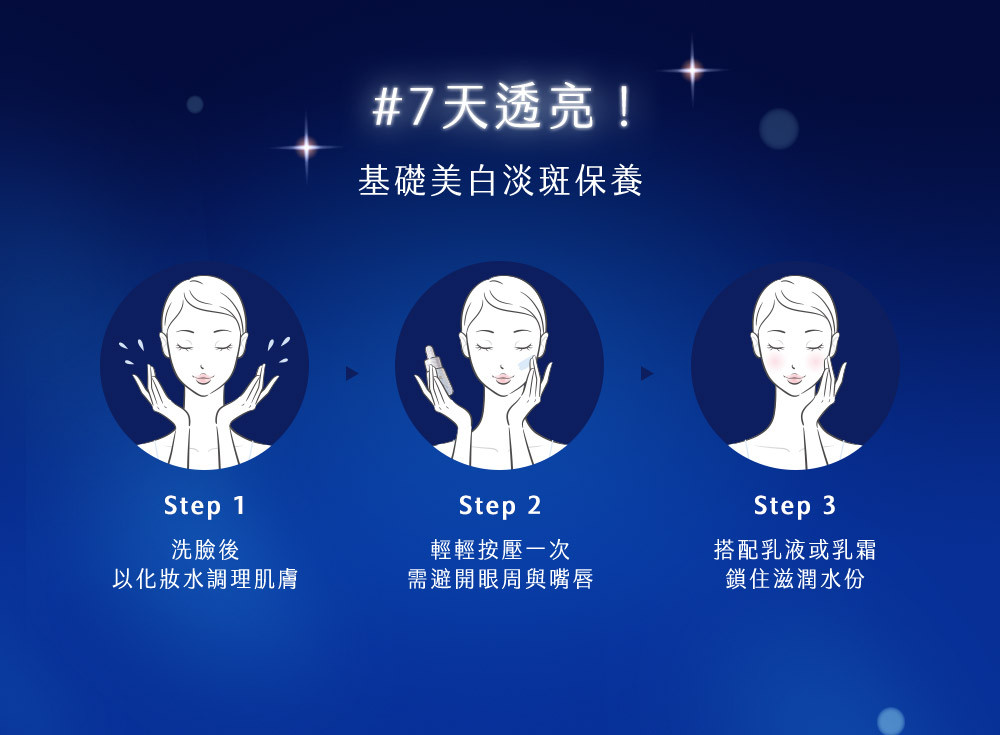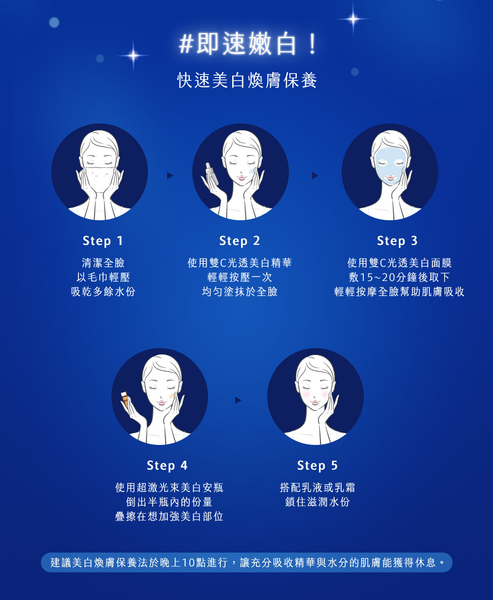 美白急速有感!雙重維他命C深入肌底淡斑不反黑,再加上維他命B3、B5,從內驅黑提亮,透出無暇肌,高純度小分子玻尿酸,美白保濕更常效,不含酒精、不黏、不易黃、不刺激。
