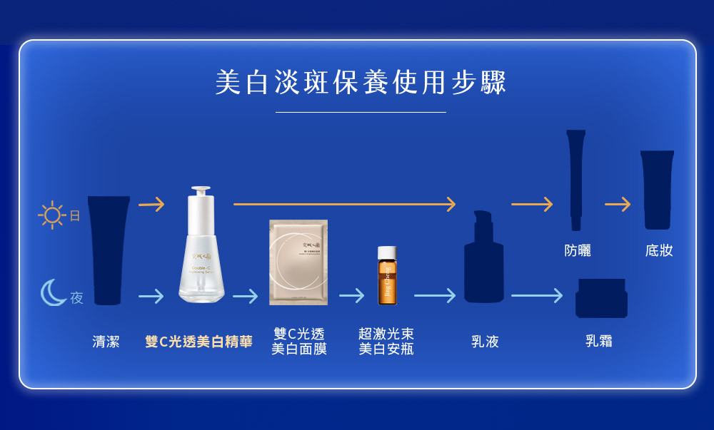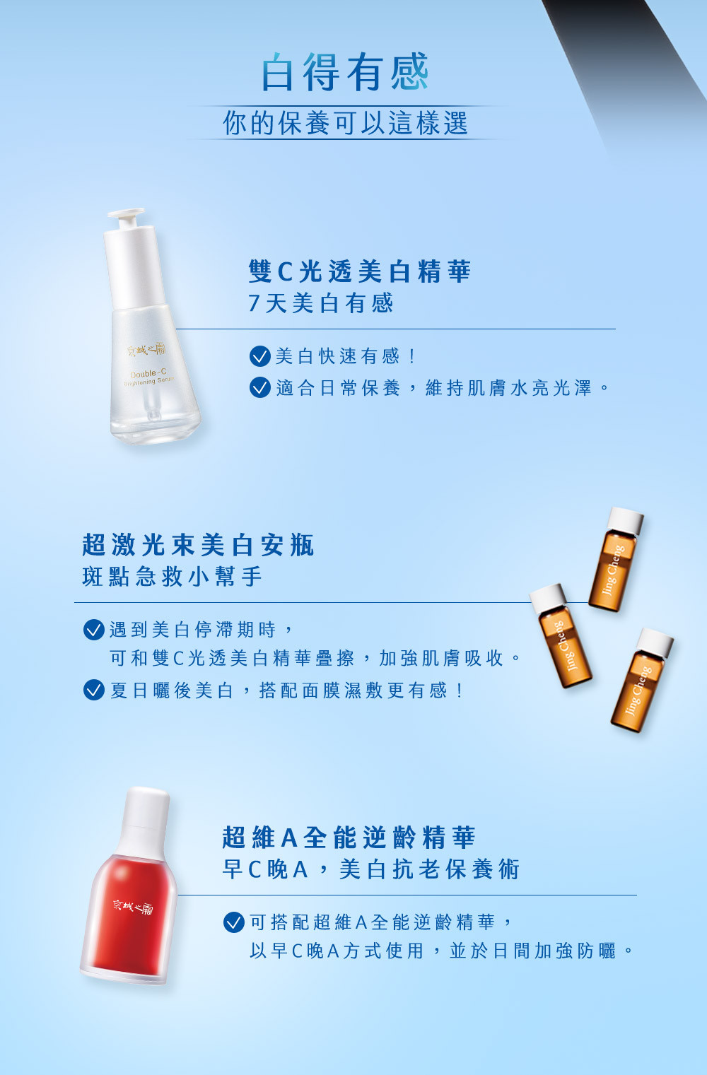 雙C亮白、雙B修護,4重精華改善黑黃乾