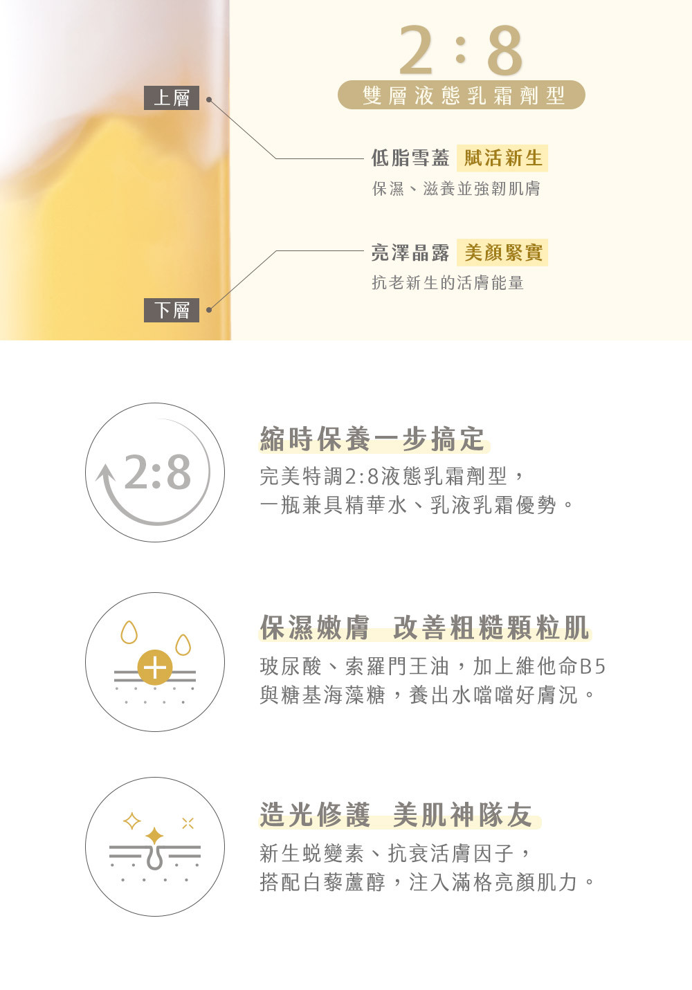 創新2:8雙層高機能精華水,快速改善乾燥粗糙
