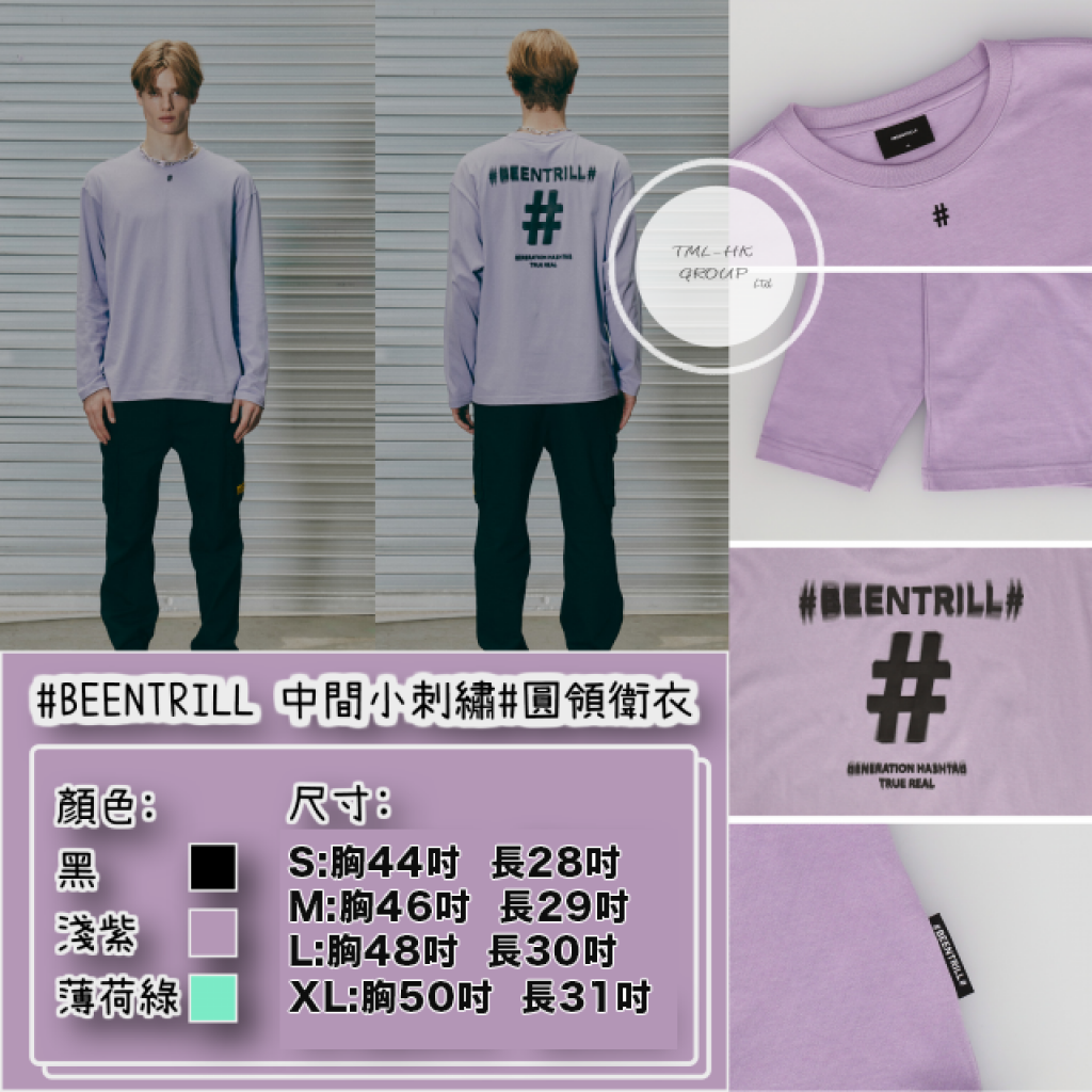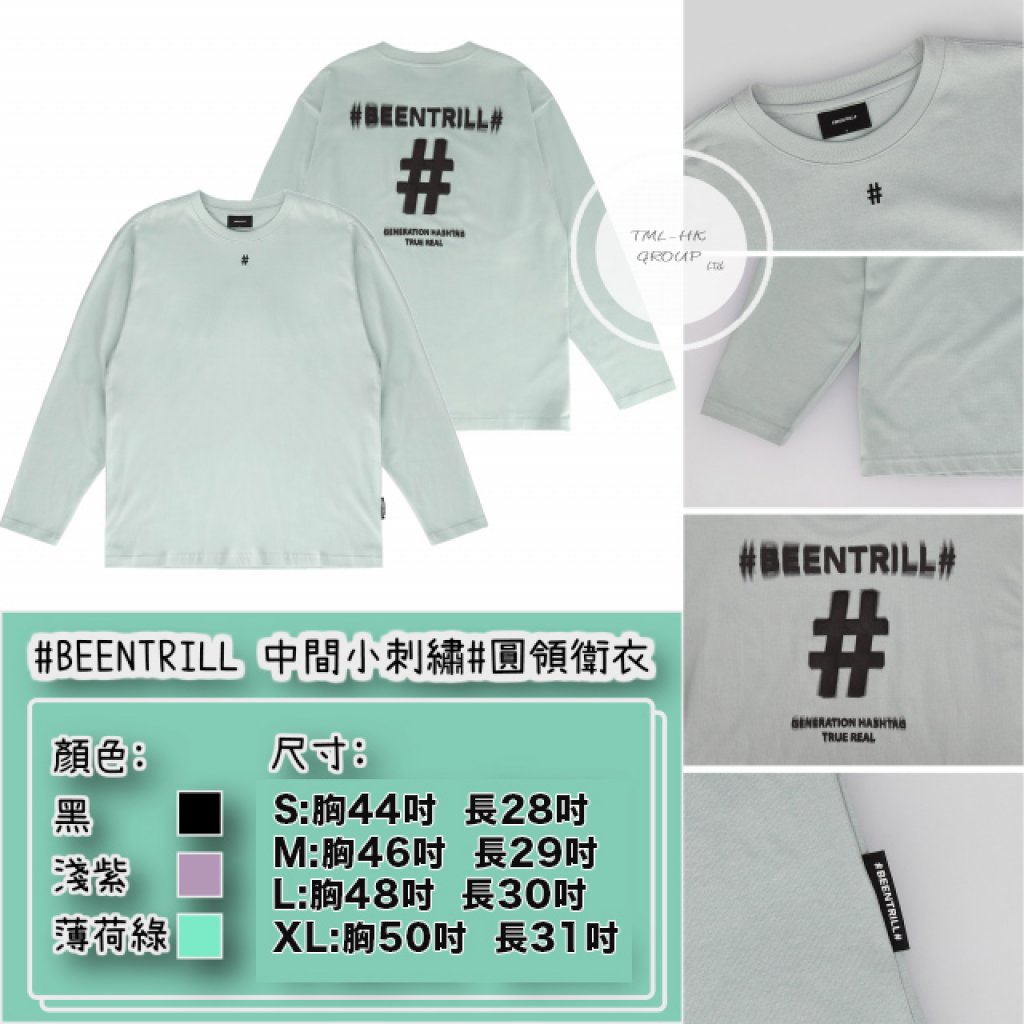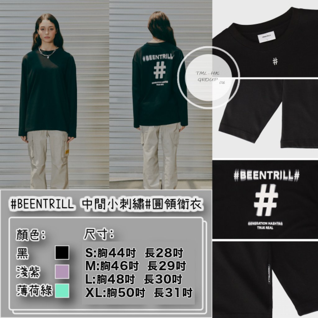 BEENTRILL 中間小刺繡# 圓領長袖TEE (BA213TL001)【現貨 | 預計2-3星期派貨 | 20260105Z(5489.)】