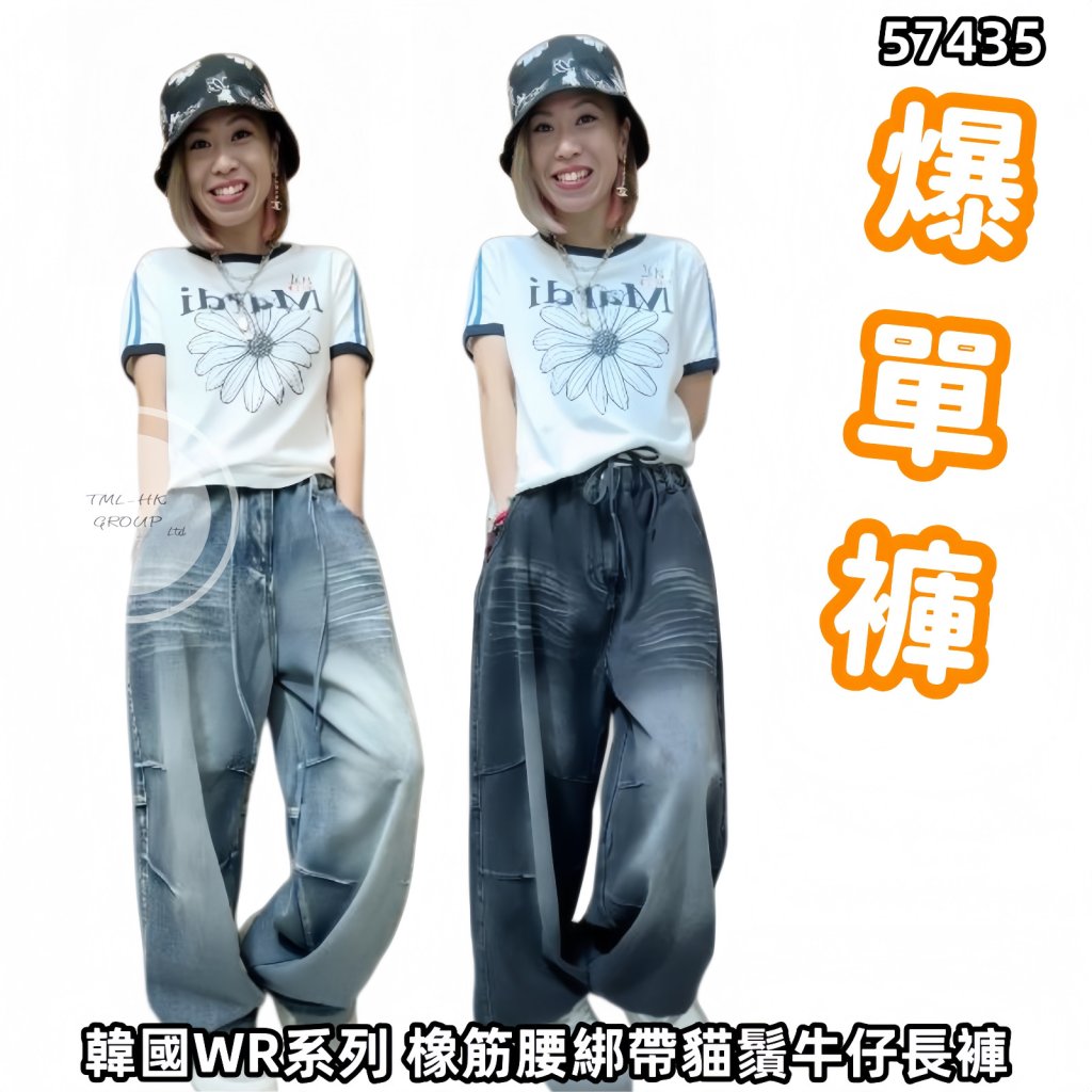 韓國 WR系列 橡筋腰綁帶貓鬚牛仔長褲【22/11截單 | 預計12月尾到貨 | 20251119A(57435.)】