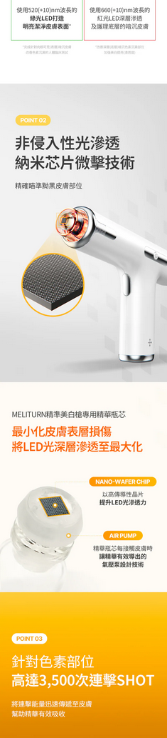 💡雙波長LED Shot:結合紅光&綠光針對不同皮層淡斑亮膚